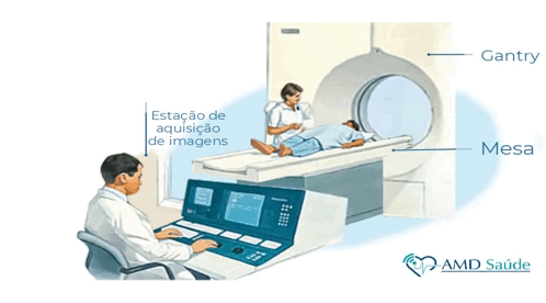 O exame é realizado por um técnico de radiologia. O paciente deve ficar imóvel por alguns instantes para a obtenção das imagens. Caso sinta algum desconforto durante o exame, o paciente poderá comunicá-lo ao técnico responsável por meio do comunicador existente no aparelho.